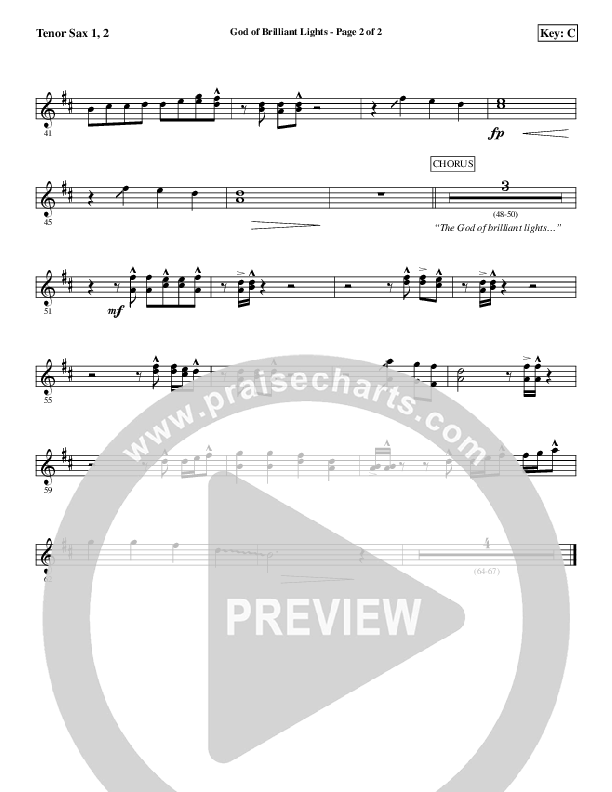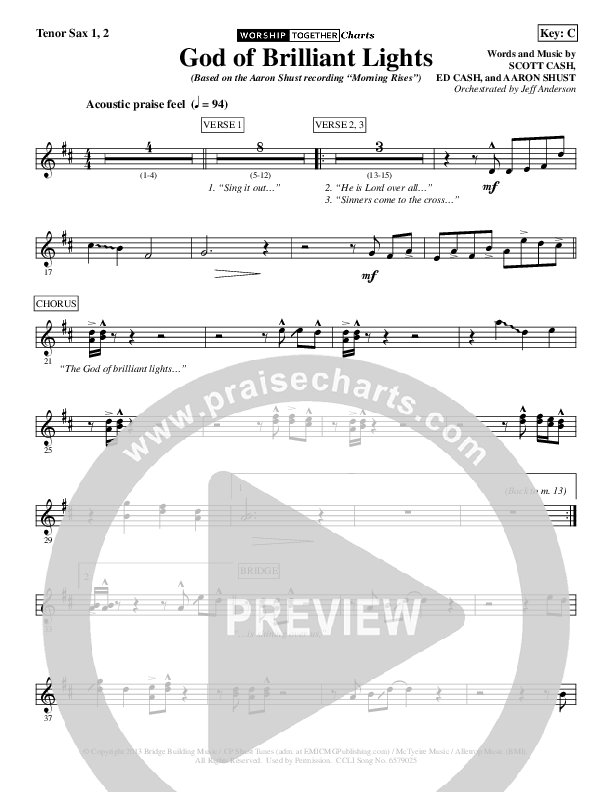 God Of Brilliant Lights Tenor Sax Sheet Music PDF (Aaron Shust)