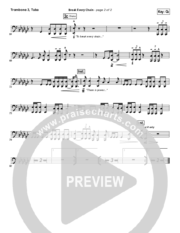 Break Every Chain Trombone/Tuba Sheet Music PDF (Will Reagan / United Pursuit)