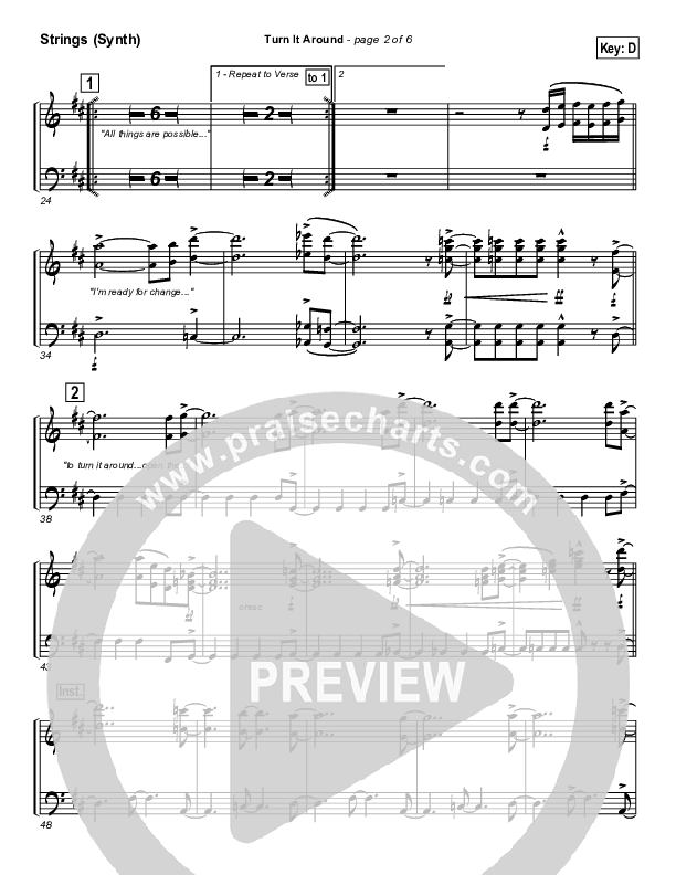 Download the Orchestration for Turn It Around by Israel Houghton, from the album Alive in South Africa. This song was arranged by John Wasson in the key of D, Eb.