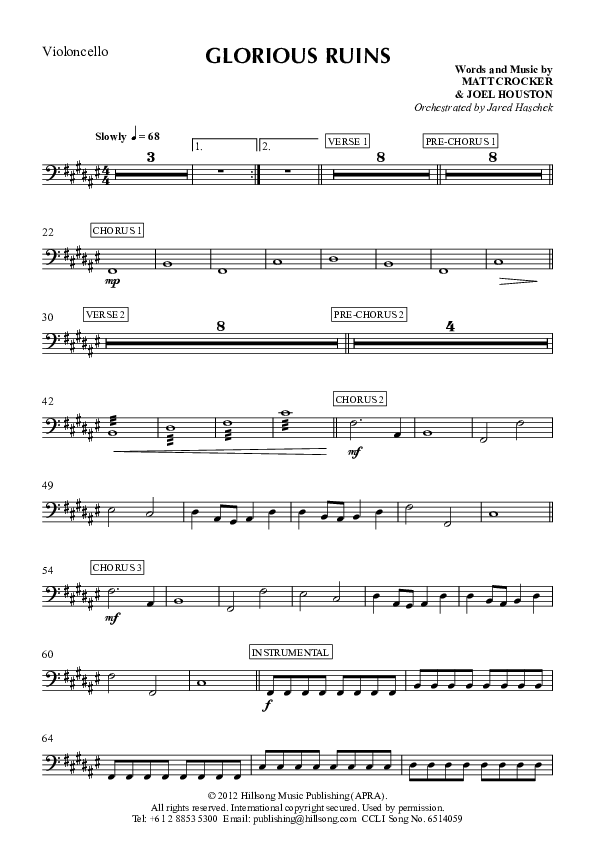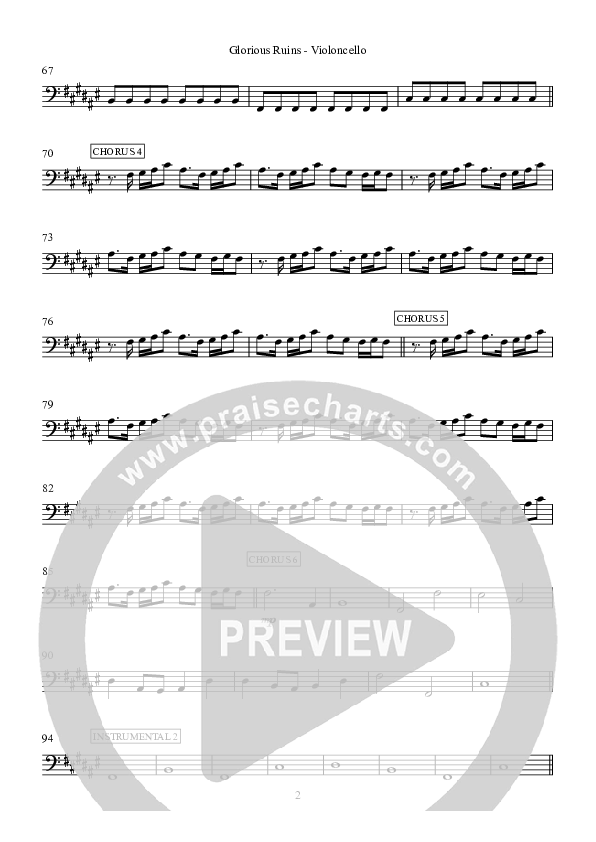 Download the Cello sheet music for Glorious Ruins by Hillsong Worship, from the album Glorious Ruins. This song was arranged by Hillsong Charts in the key of F#.