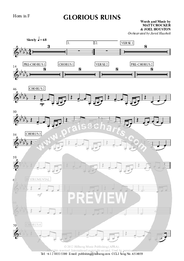 Download the Orchestration for Glorious Ruins by Hillsong Worship, from the album Glorious Ruins. This song was arranged by Hillsong Charts in the key of F#.