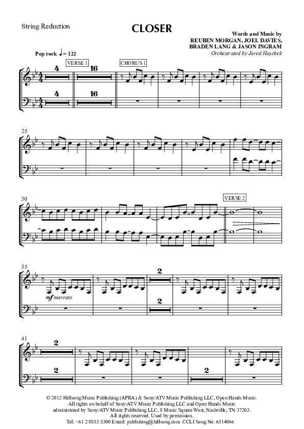 Download the Orchestration for Closer by Hillsong Worship, from the album Glorious Ruins. This song was arranged by Hillsong Charts in the key of C.