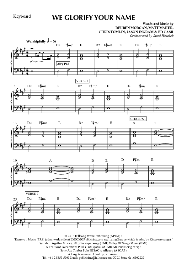 Download the Orchestration for We Glorify Your Name by Hillsong Worship, from the album Glorious Ruins. This song was arranged by Hillsong Charts in the key of B, Bb.
