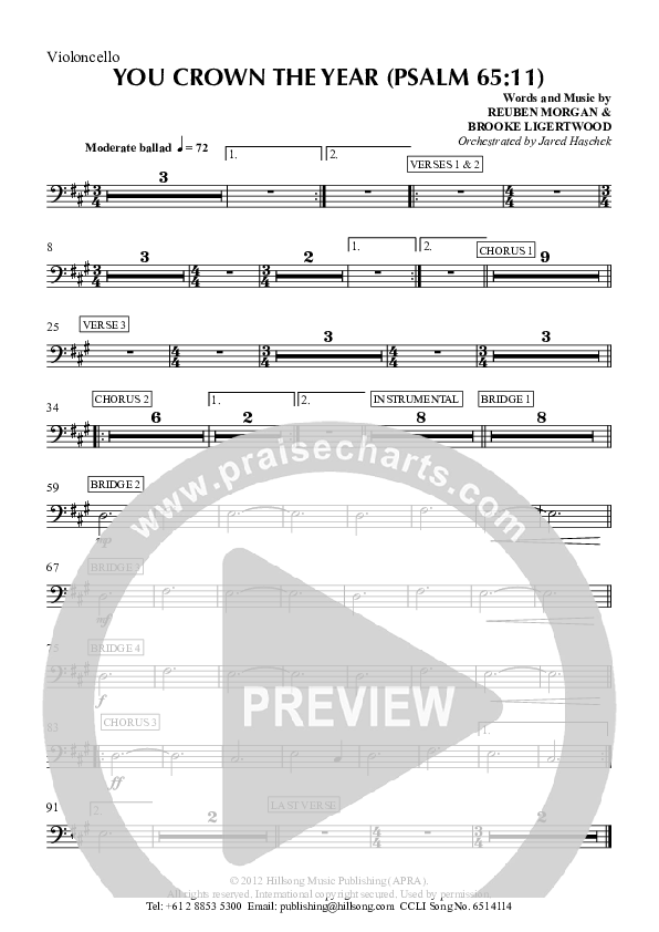 You Crown The Year Cello Sheet Music PDF (Hillsong Worship)