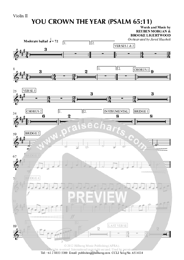 Download the Orchestration for You Crown The Year by Hillsong Worship, from the album Glorious Ruins. This song was arranged by Hillsong Charts in the key of A.