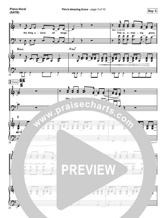 Download the sheet music for This Is Amazing Grace by Bethel Music, from the album For The Sake Of The World. This song was arranged by Daniel Galbraith in the key of Bb, C.