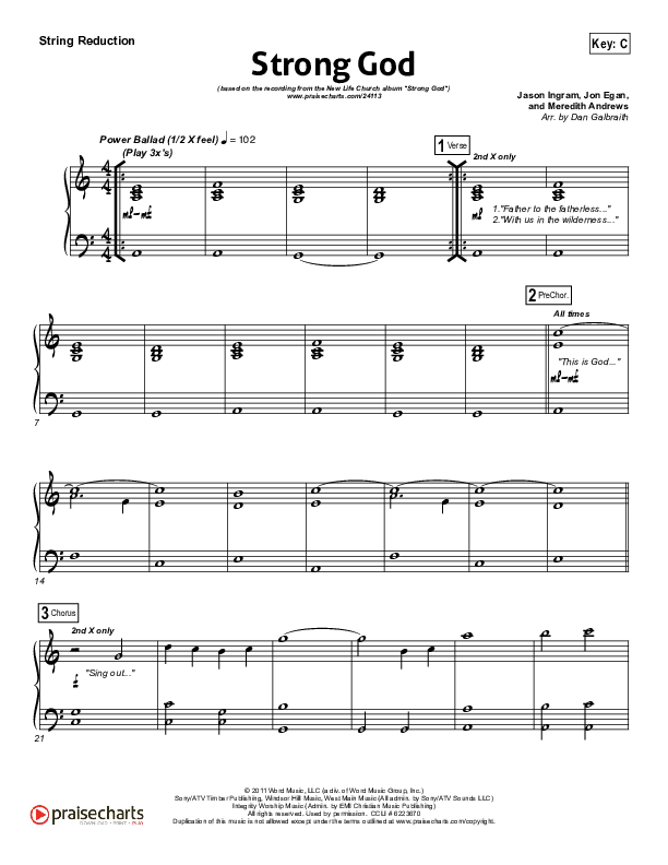Download the Orchestration for Strong God by Jon Egan / New Life Worship, from the album Strong God. This song was arranged by Daniel Galbraith in the key of Bb, C.