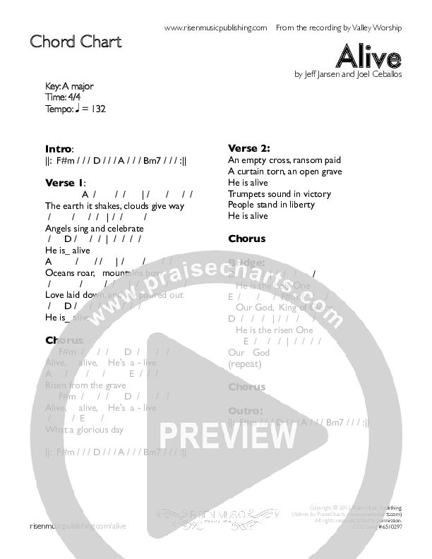 Download the PDF Chord Charts for Alive by Valley Worship, from the album Alive.