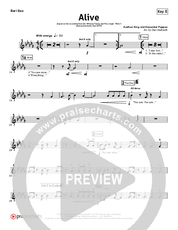 Alive Bari Sax Sheet Music PDF (Hillsong Young & Free)