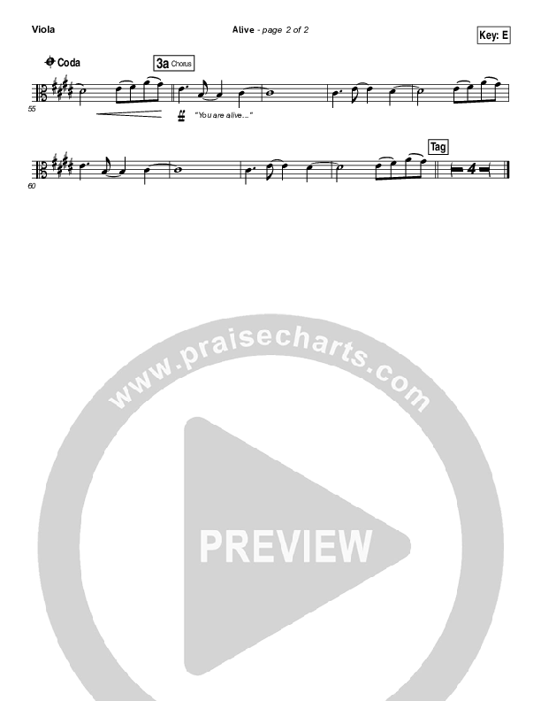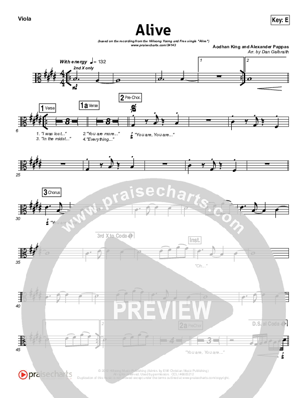 Download the Viola sheet music for Alive by Hillsong Young & Free, from the album We Are. This song was arranged by Daniel Galbraith in the key of C, D, E, Eb.