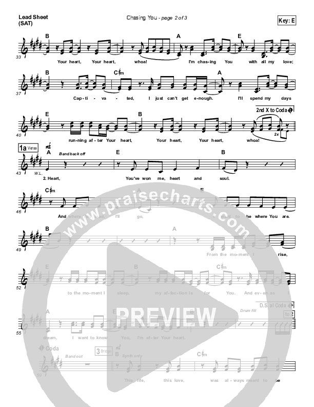 Download the sheet music for Chasing You by Bethel Music / Jenn Johnson, from the album Tides. This song was arranged by Brad Henderson in the key of E, Eb.