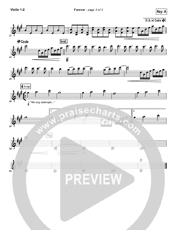 Download the Violin sheet music for Forever by Bethel Music / Brian Johnson, from the album Tides. This song was arranged by Daniel Galbraith in the key of A, Bb.