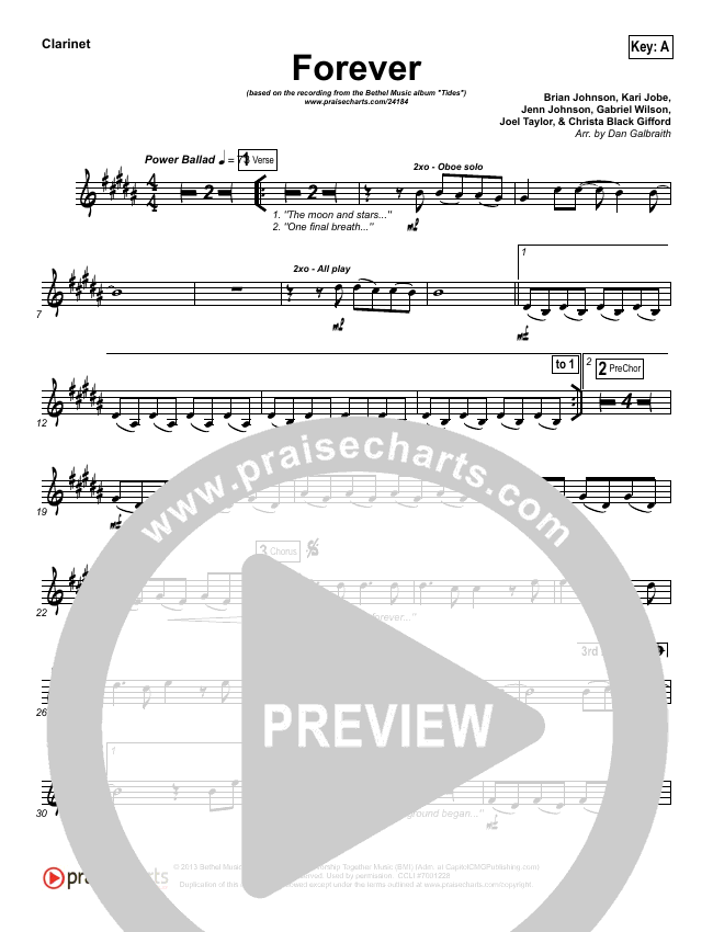 Download the Orchestration wind parts for Forever by Bethel Music / Brian Johnson, from the album Tides. This song was arranged by Daniel Galbraith in the key of A, Bb.