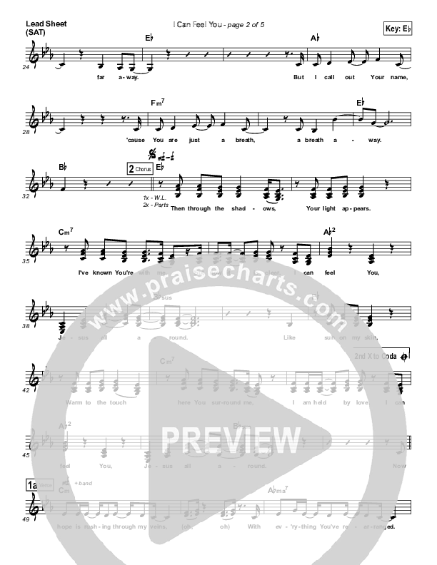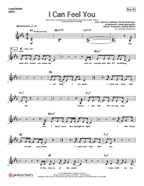 I Can Feel You Lead Sheet (SAT) (Bethel Music / Jenn Johnson)
