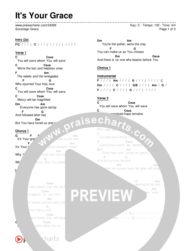 Download the PDF Chord Charts for It's Your Grace by Sovereign Grace, from the album Grace Has Come: Songs From The Book Of Romans.