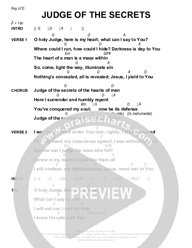 Judge Of The Secrets Chords PDF (Sovereign Grace)