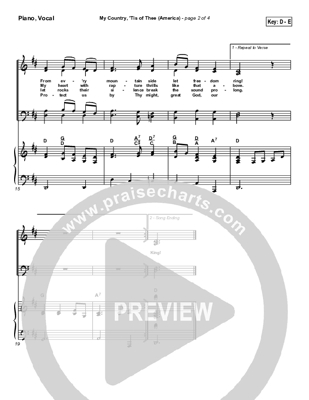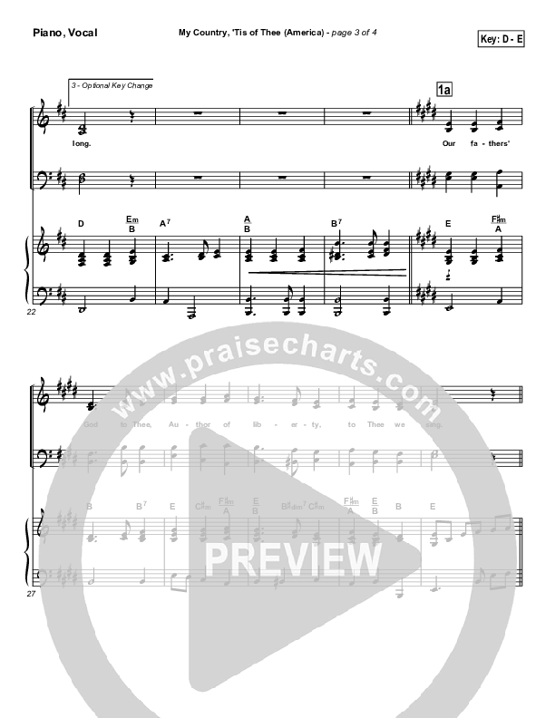 My Country Tis Of Thee Sheet Music PDF (PraiseCharts / Traditional Hymn)