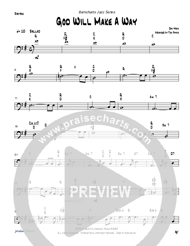 Download the Rhythm Chart for God Will Make A Way (Instrumental) by Tom Payne, from the album Tom Payne Barncharts Jazz Series. This song was arranged by Tom Payne in the key of G.