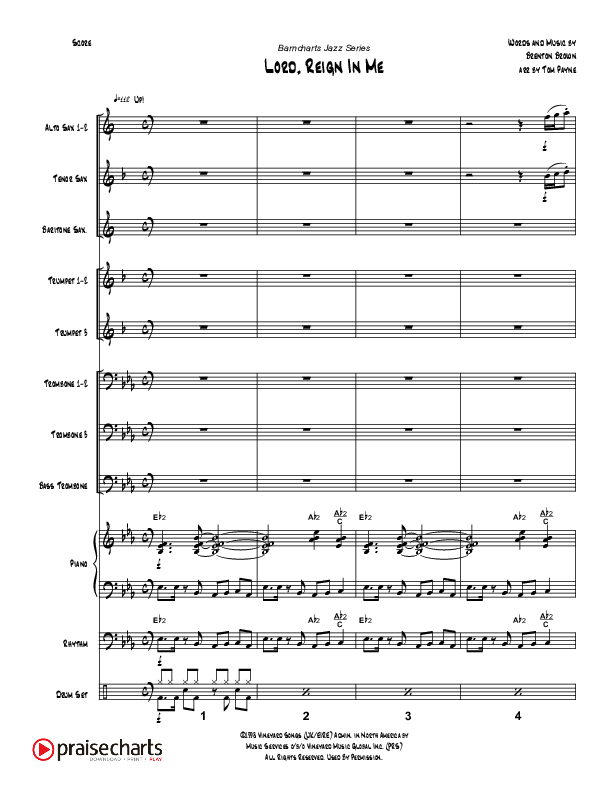 Download the Orchestration for Lord Reign In Me (Instrumental) by Tom Payne, from the album Tom Payne Barncharts Jazz Series. This song was arranged by Tom Payne in the key of Eb.