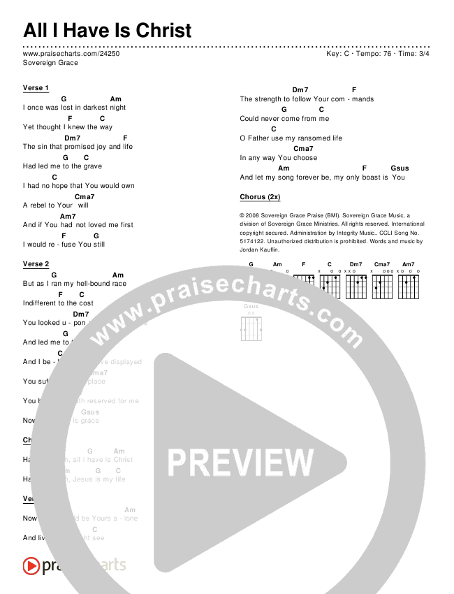 All I Have Is Christ Chords PDF (Sovereign Grace)