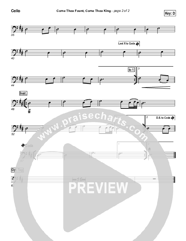 Download the Cello sheet music for Come Thou Fount Come Thou King by Gateway Worship, from the album Living For You. This song was arranged by Daniel Galbraith in the key of C, D.