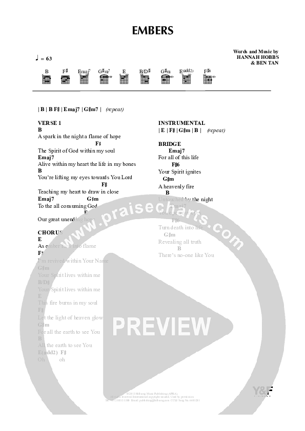 Download the PDF Chord Charts for Embers by Hillsong Young & Free, from the album We Are. This song was arranged by Hillsong Charts in the key of B.