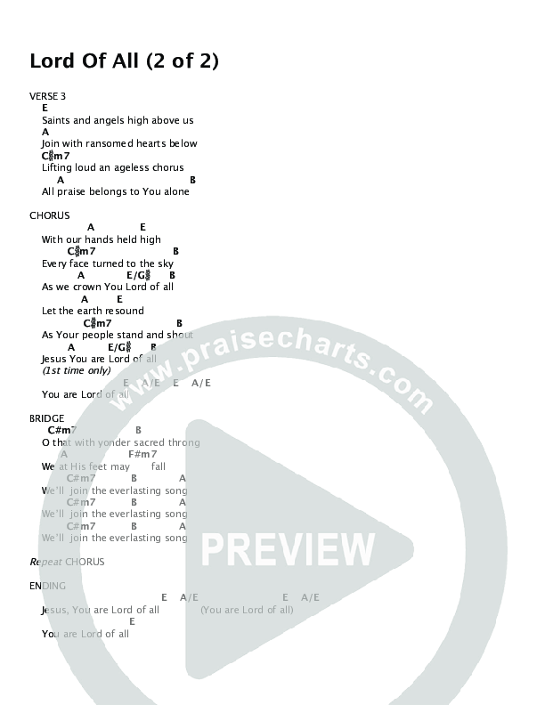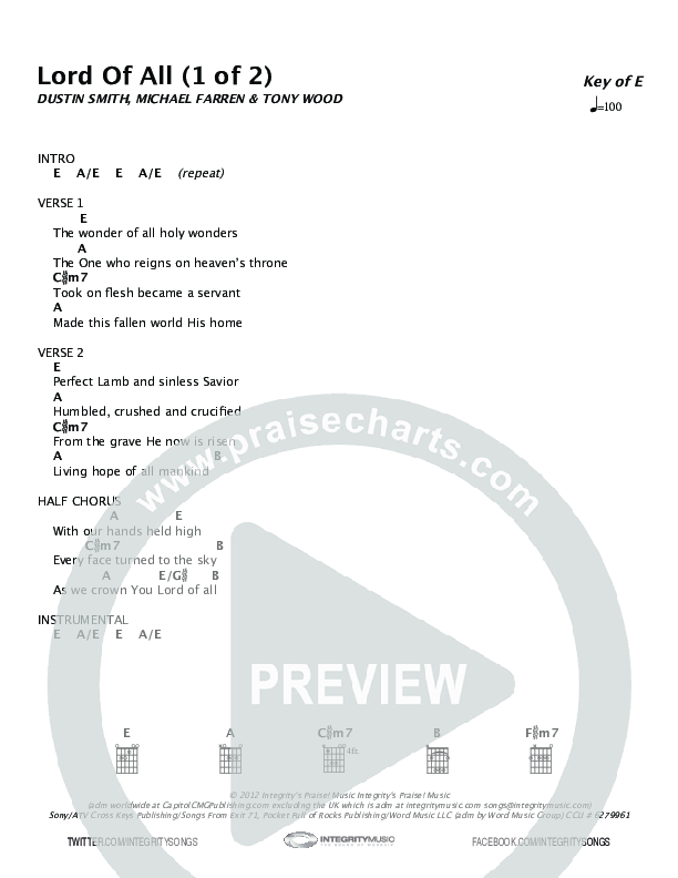 Download the PDF Chord Charts for Lord Of All by Dustin Smith, from the album Rushing Waters . This song was arranged by Integrity Music in the key of E.