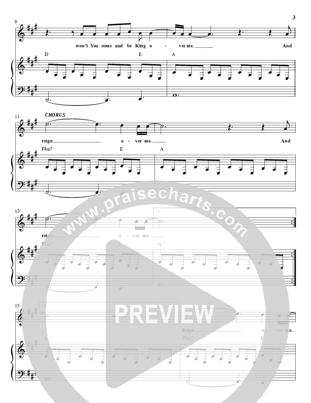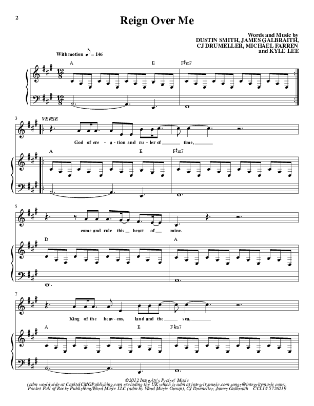 Download the sheet music for Reign Over Me by Dustin Smith, from the album Rushing Waters . This song was arranged by Integrity Music in the key of A.