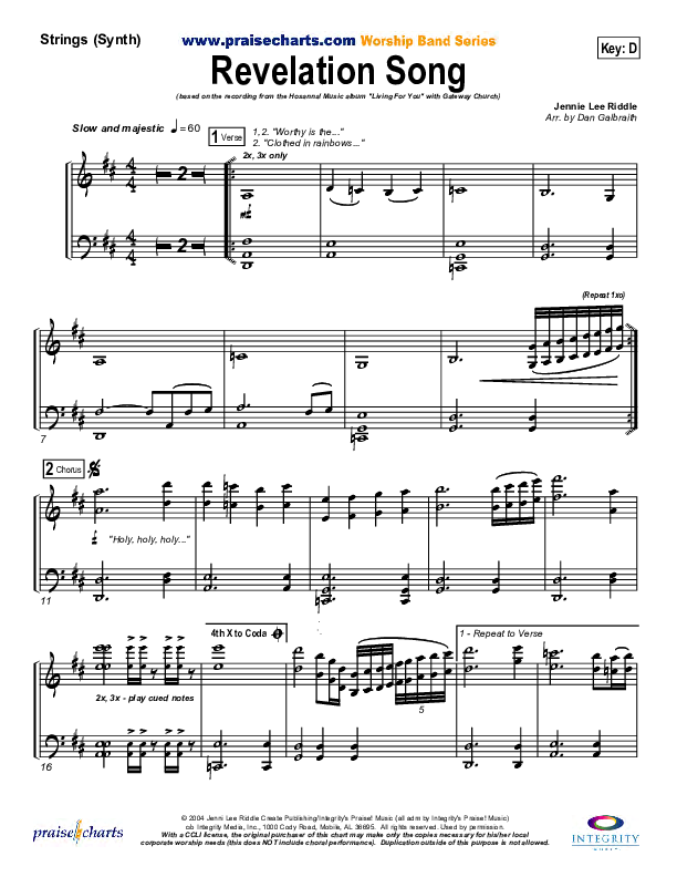 Download the Orchestration for Revelation Song by Gateway Worship, from the album Living For You. This song was arranged by Daniel Galbraith in the key of D, Eb.