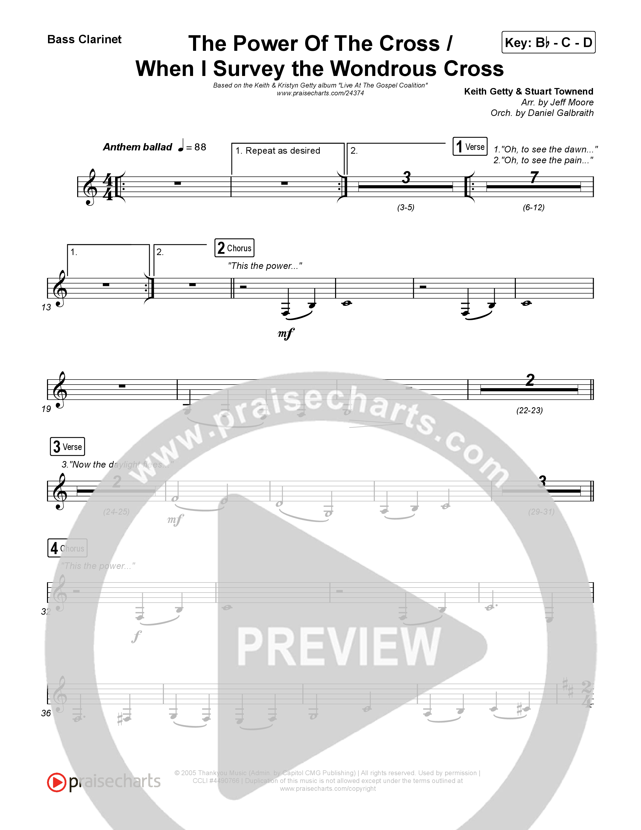 Download the Bass Clarinet sheet music for The Power Of The Cross/When I Survey The Wondrous Cross by Keith & Kristyn Getty, from the album Live At The Gospel Coalition. This song was arranged by Jeff Moore in the key of Bb.