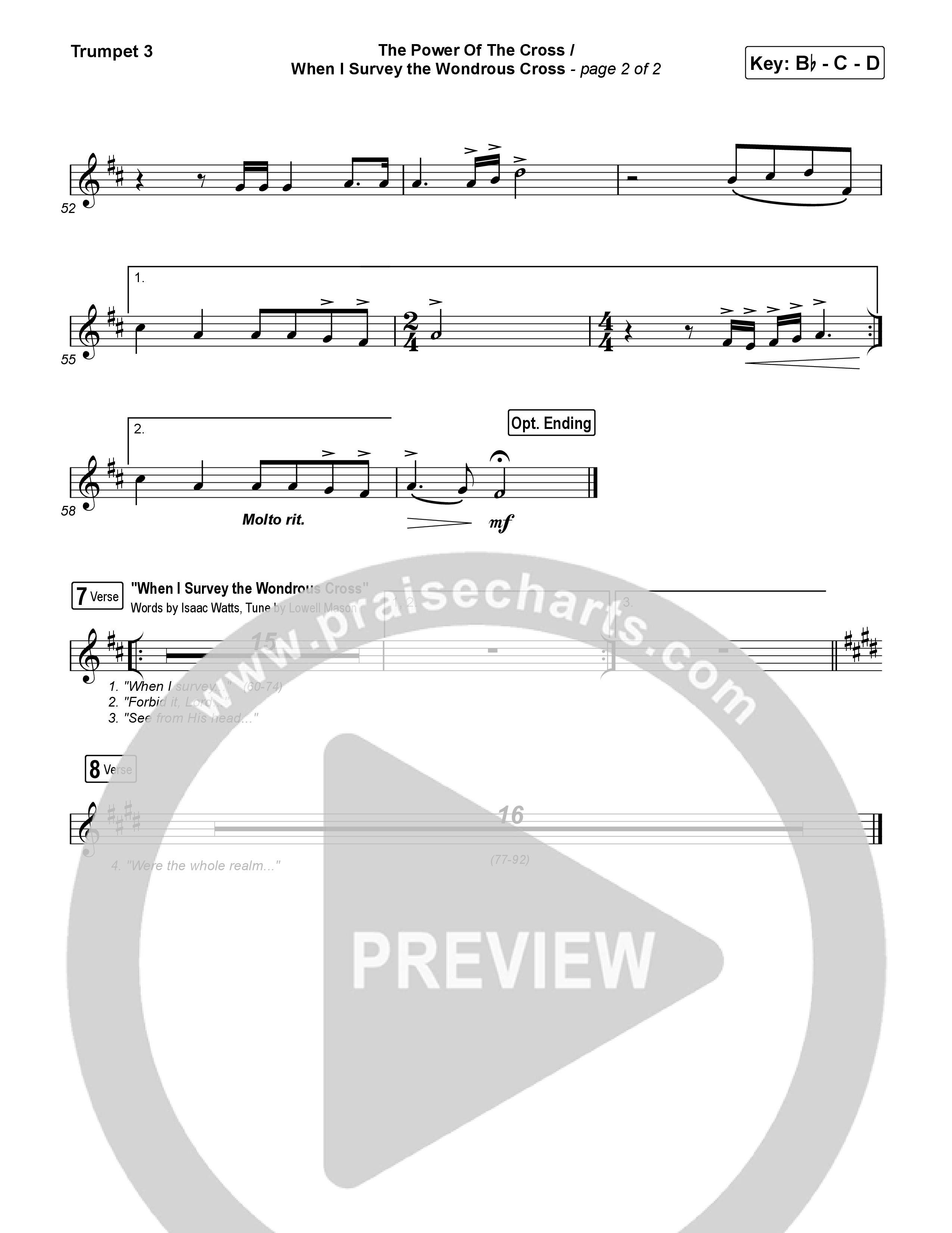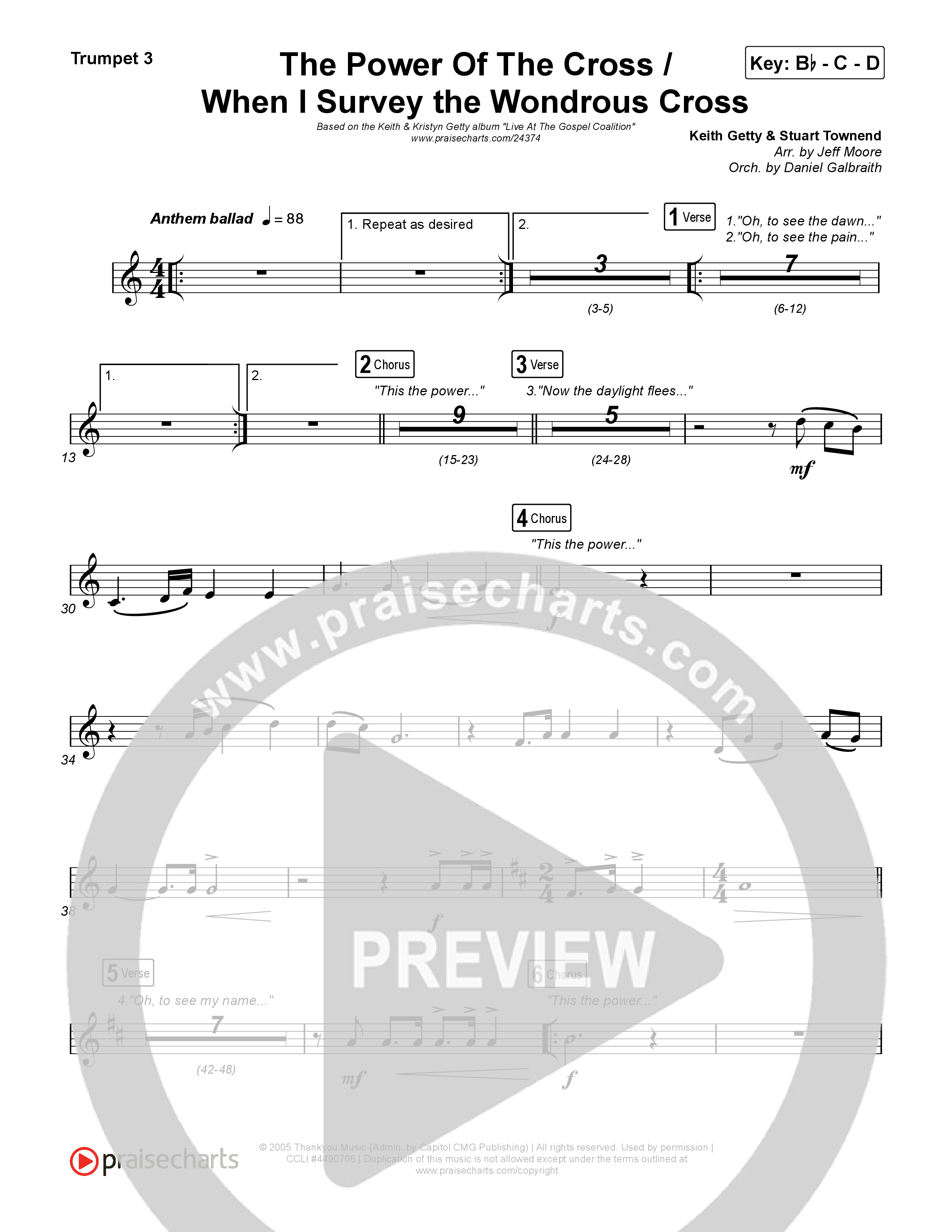 Download the Trumpet 3 sheet music for The Power Of The Cross/When I Survey The Wondrous Cross by Keith & Kristyn Getty, from the album Live At The Gospel Coalition. This song was arranged by Jeff Moore in the key of Bb.