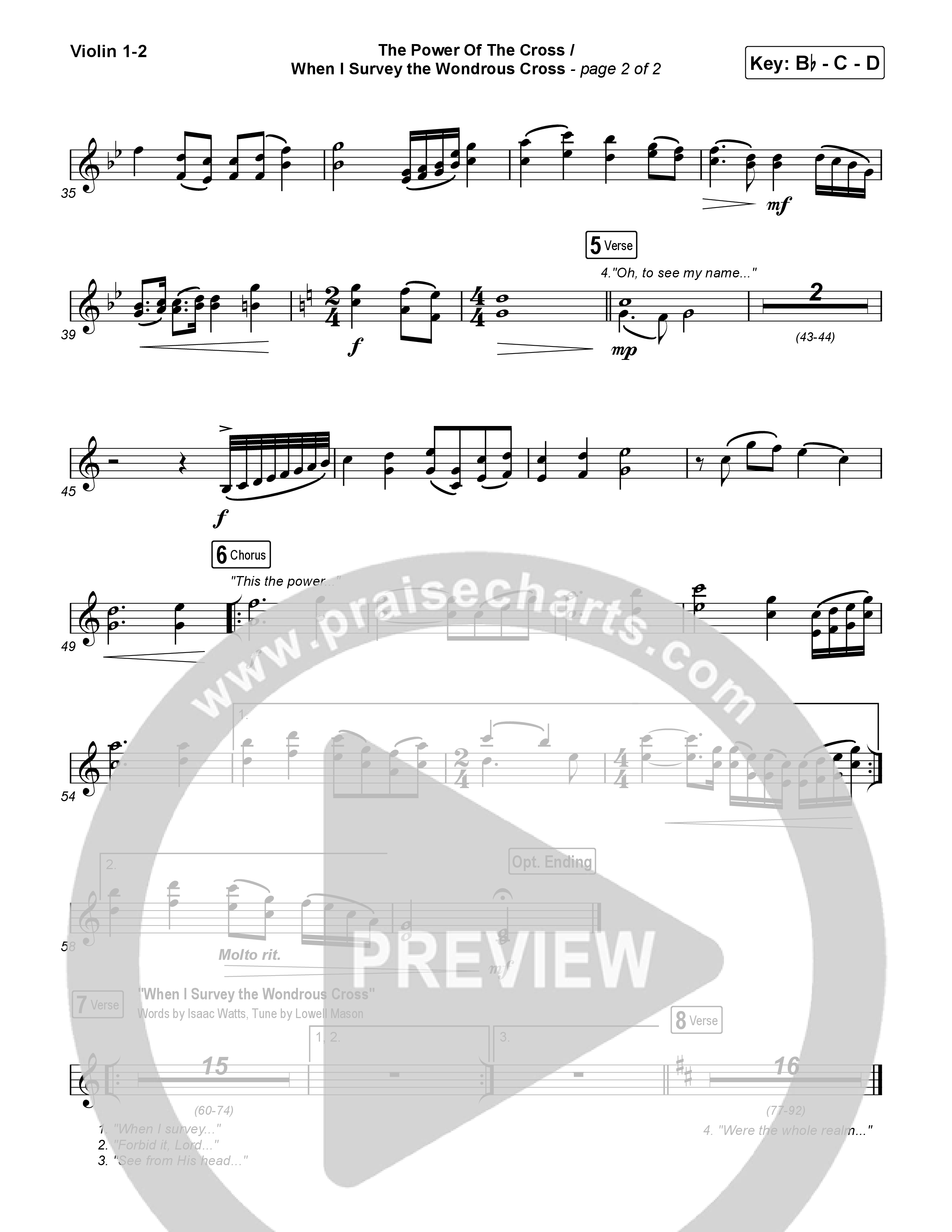 Download the Violin sheet music for The Power Of The Cross/When I Survey The Wondrous Cross by Keith & Kristyn Getty, from the album Live At The Gospel Coalition. This song was arranged by Jeff Moore in the key of Bb.
