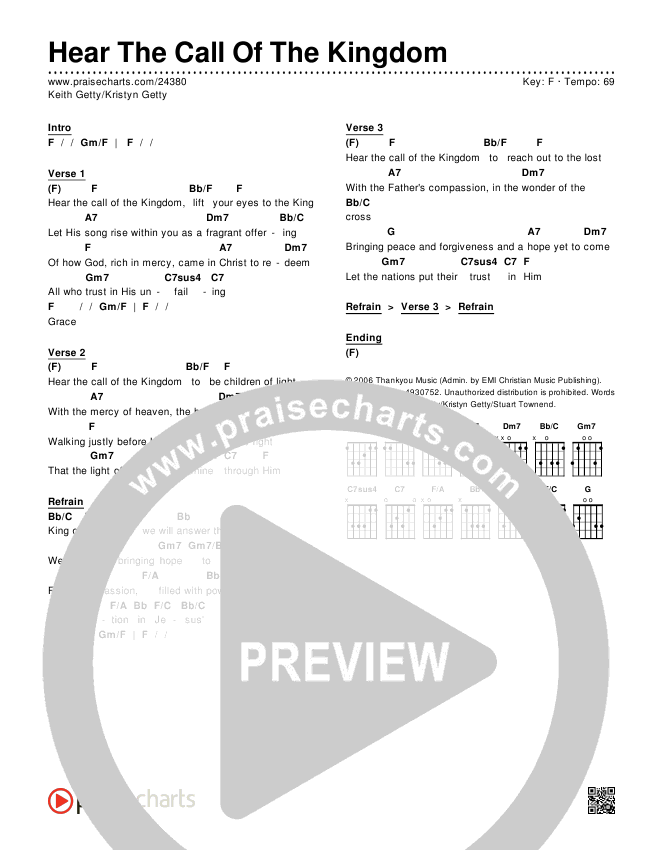 Hear The Call Of The Kingdom Chords PDF (Keith & Kristyn Getty)