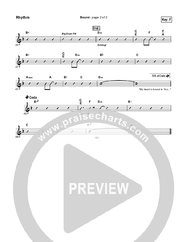 Download the Rhythm Chart for Bound by Gateway Worship, from the album Living For You. This song was arranged by Ed Hogan in the key of F, G.