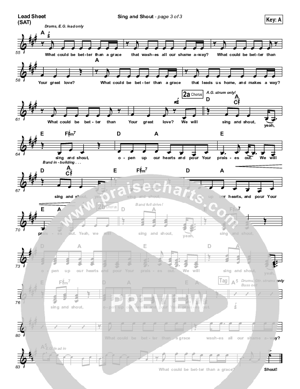 Download the sheet music for Sing And Shout by Matt Redman, from the album Your Grace Finds Me. This song was arranged by Daniel Galbraith in the key of A, G.