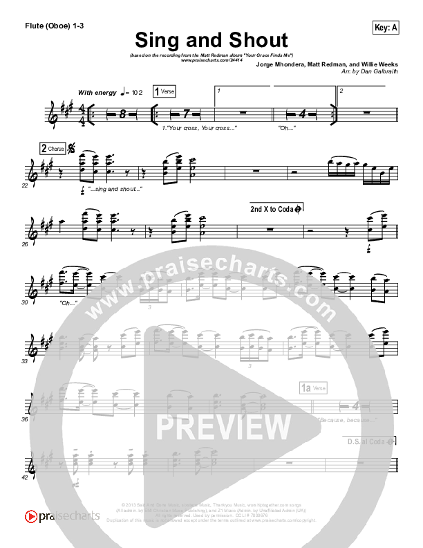 Download the Orchestration wind parts for Sing And Shout by Matt Redman, from the album Your Grace Finds Me. This song was arranged by Daniel Galbraith in the key of A, G.