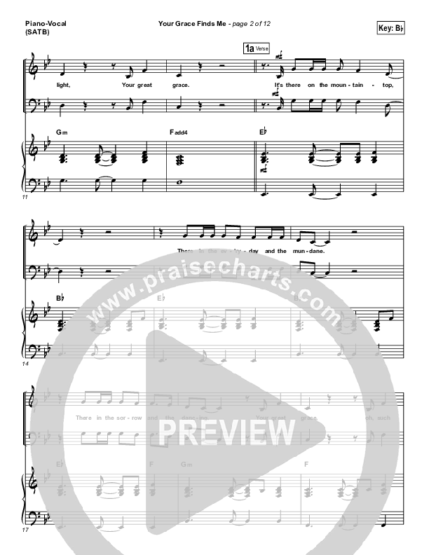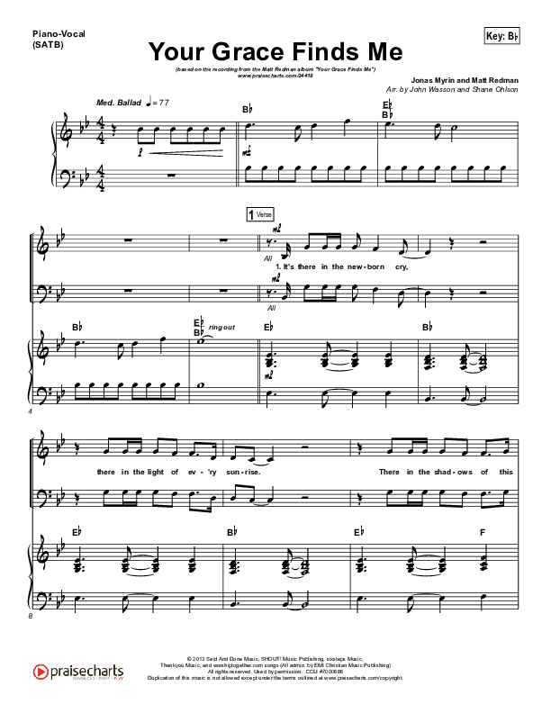 Download the sheet music for Your Grace Finds Me by Matt Redman, from the album Your Grace Finds Me. This song was arranged by John Wasson in the key of A, Bb.