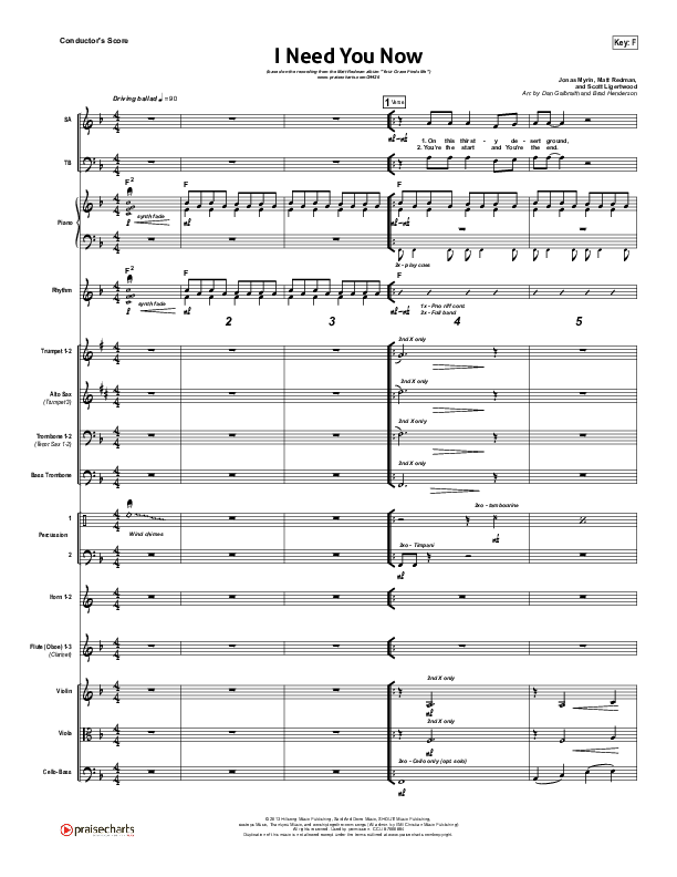 Download the Orchestration for I Need You Now by Matt Redman, from the album Your Grace Finds Me. This song was arranged by Daniel Galbraith / Brad Henderson in the key of F, G.