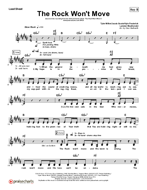 Download the Orchestration for The Rock Won't Move by Vertical Worship, from the album The Rock Won't Move. This song was arranged by Daniel Galbraith in the key of A, B, Bb.