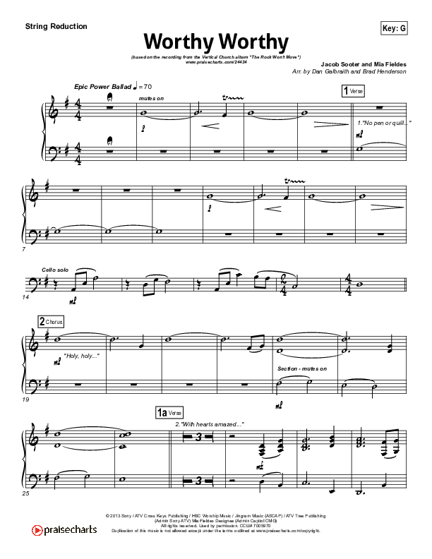 Download the Orchestration for Worthy Worthy by Vertical Worship, from the album The Rock Won't Move. This song was arranged by Daniel Galbraith / Brad Henderson in the key of A, G.