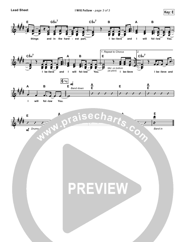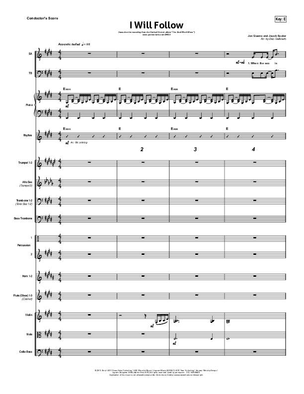Download the Orchestration for I Will Follow by Vertical Worship, from the album The Rock Won't Move. This song was arranged by Daniel Galbraith in the key of E, Eb.