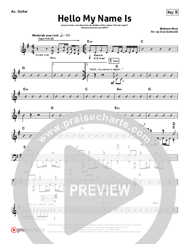 Hello My Name Is Sheet Music PDF (Matthew West)