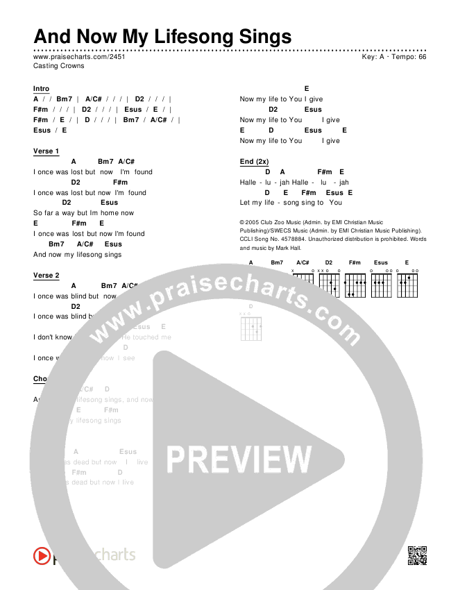 And Now My Lifesong Sings Chords PDF (Casting Crowns)