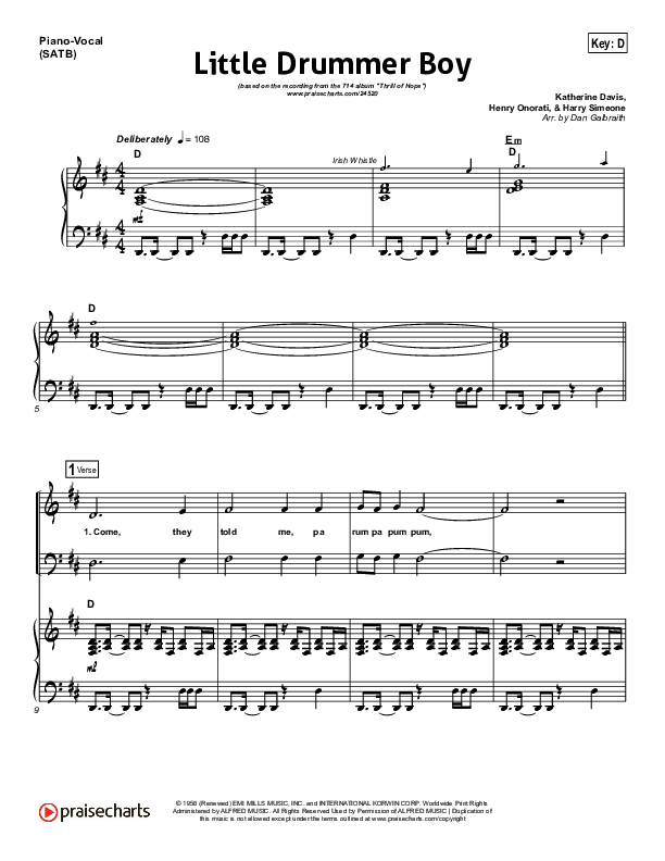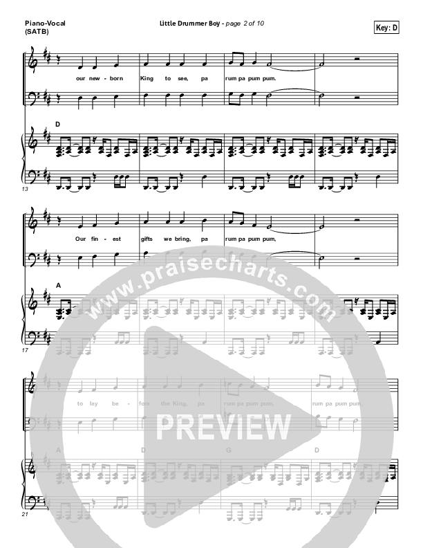 Download the sheet music for Little Drummer Boy (Prince Of Peace) by NCC Worship, from the album Thrill Of Hope. This song was arranged by Daniel Galbraith in the key of D, Eb.