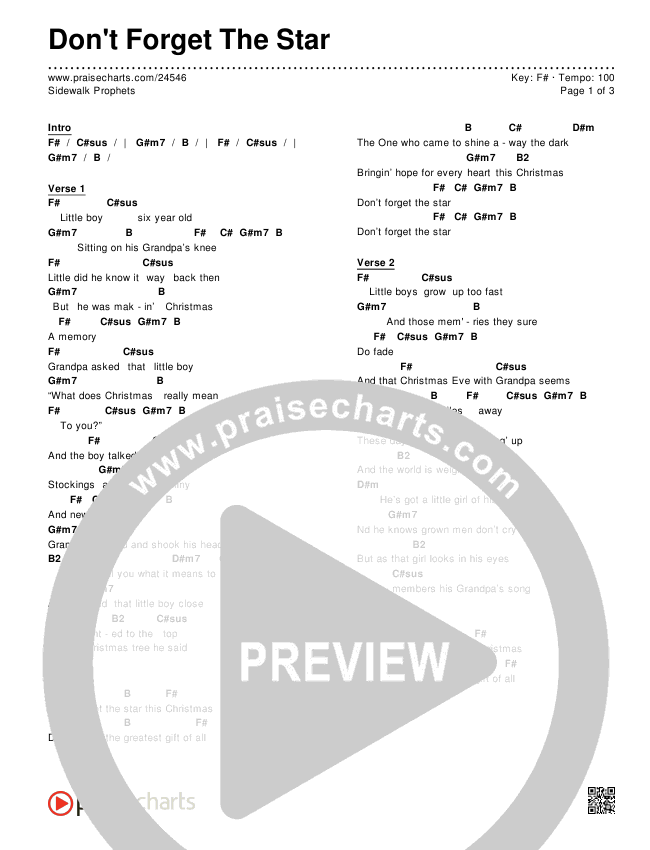 Don't Forget The Star Chords PDF (Sidewalk Prophets)
