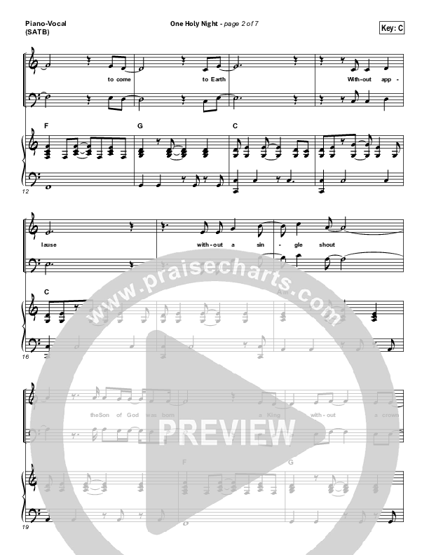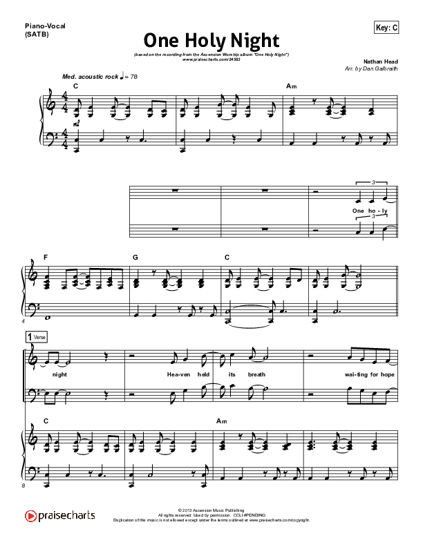 Download the sheet music for One Holy Night by Ascension Worship, from the album One Holy Night. This song was arranged by Daniel Galbraith in the key of Bb, C.