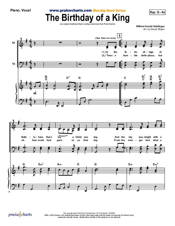The Birthday Of A King Sheet Music PDF ( / Traditional Carol / PraiseCharts)