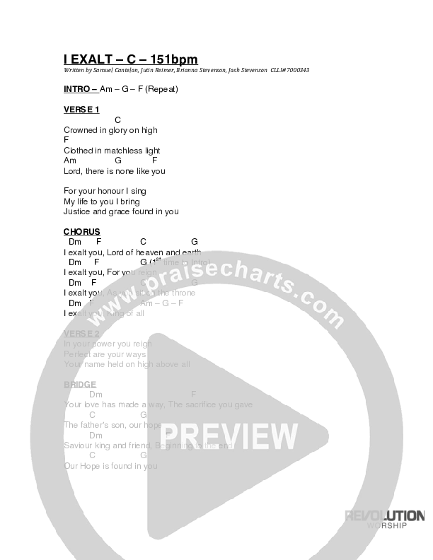 I Exalt Chords PDF (Revolution Worship)