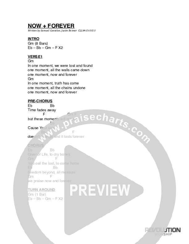 Download the PDF Chord Charts for Now + Forever by Revolution Worship, from the album Live In Love.