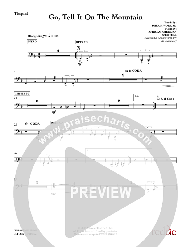 Go Tell It On The Mountain Timpani Sheet Music PDF (Red Tie Music)